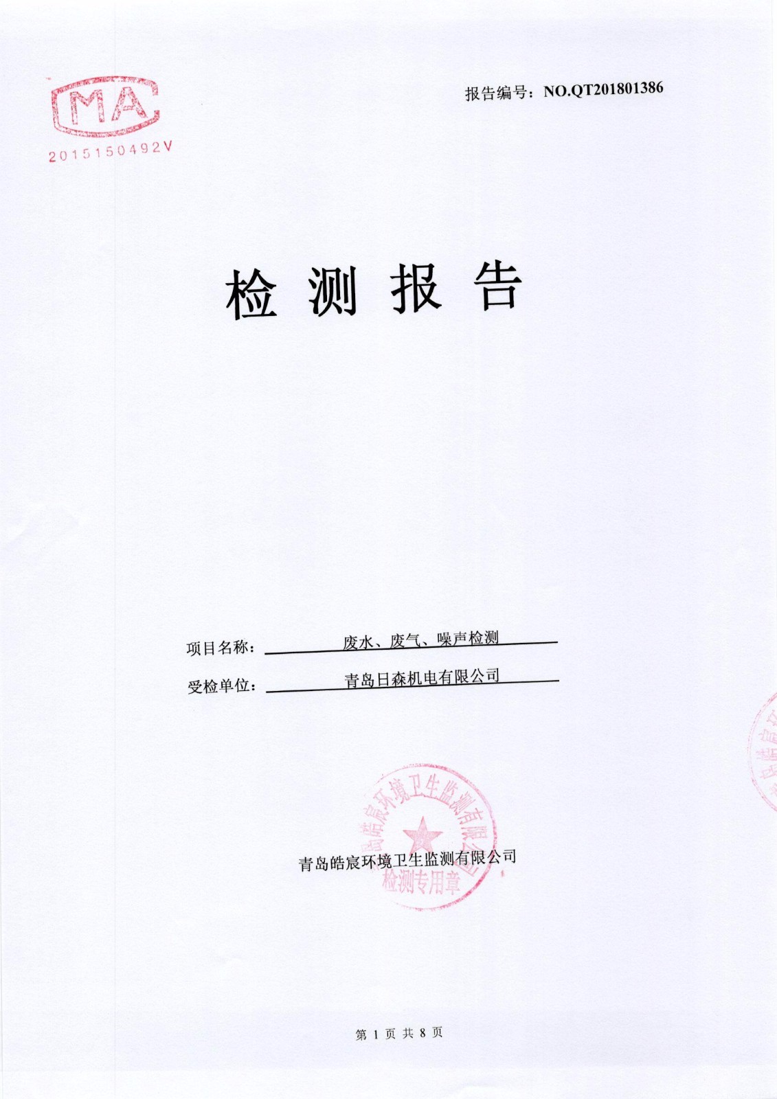 關(guān)于日森機(jī)電有限公司廢水、廢氣、噪聲監(jiān)測(cè)報(bào)告的公示